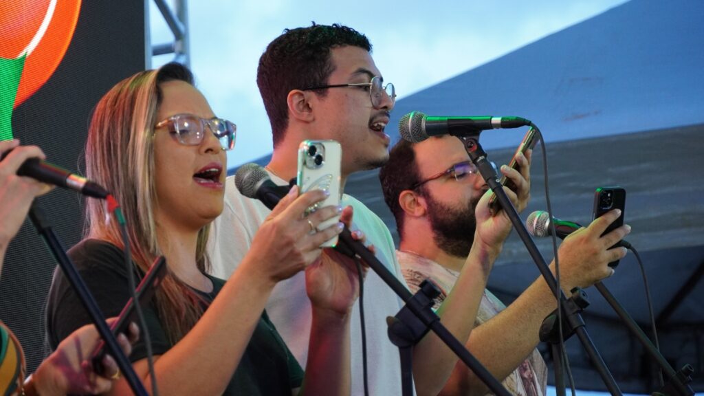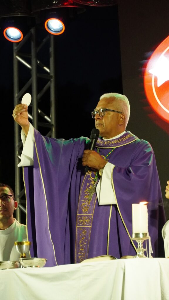 A Santa Missa reuniu uma multidão que participou intensamente de cada momento, manifestando fé e amor. A emoção estava visível nos rostos dos presentes, que vivenciaram a liturgia com profunda devoção, trazendo ao coração a certeza de que o amor que vai nascer é o que preenche a humanidade de paz e esperança.